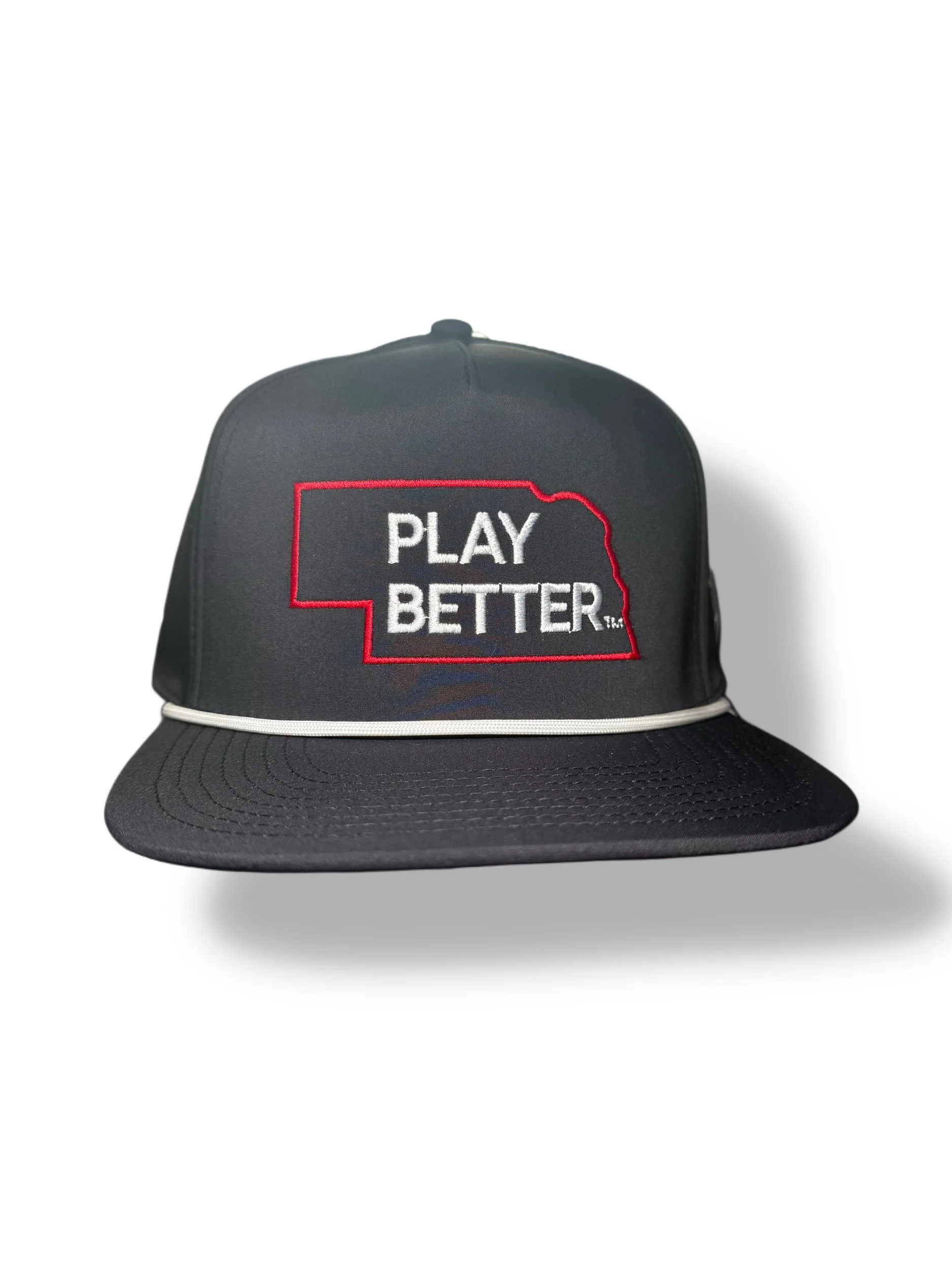 Our rope, curved performance hat is constructed with materials that are lightweight, wash easily, and stretch for added comfort. Snapback Closure.